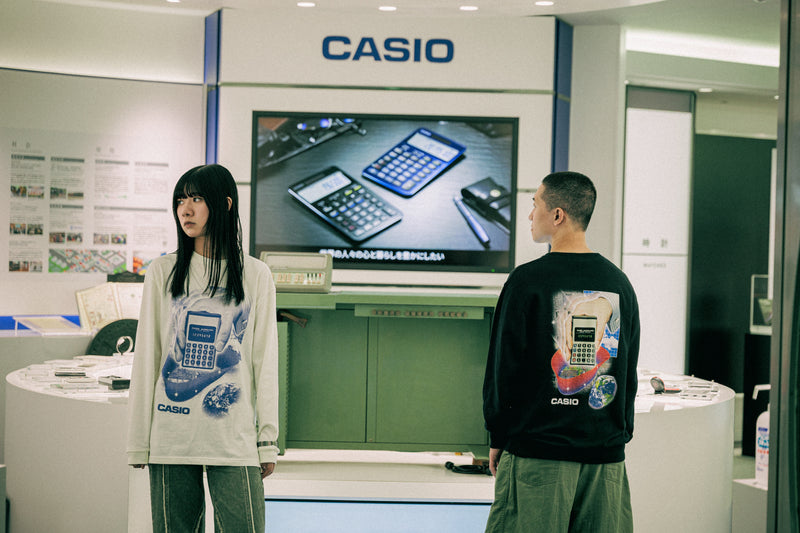 レトロフューチャーな「電卓」デザインを纏うコラボスウェット/ロンTが、カシオ計算機の電卓60周年記念企画の一環として登場
