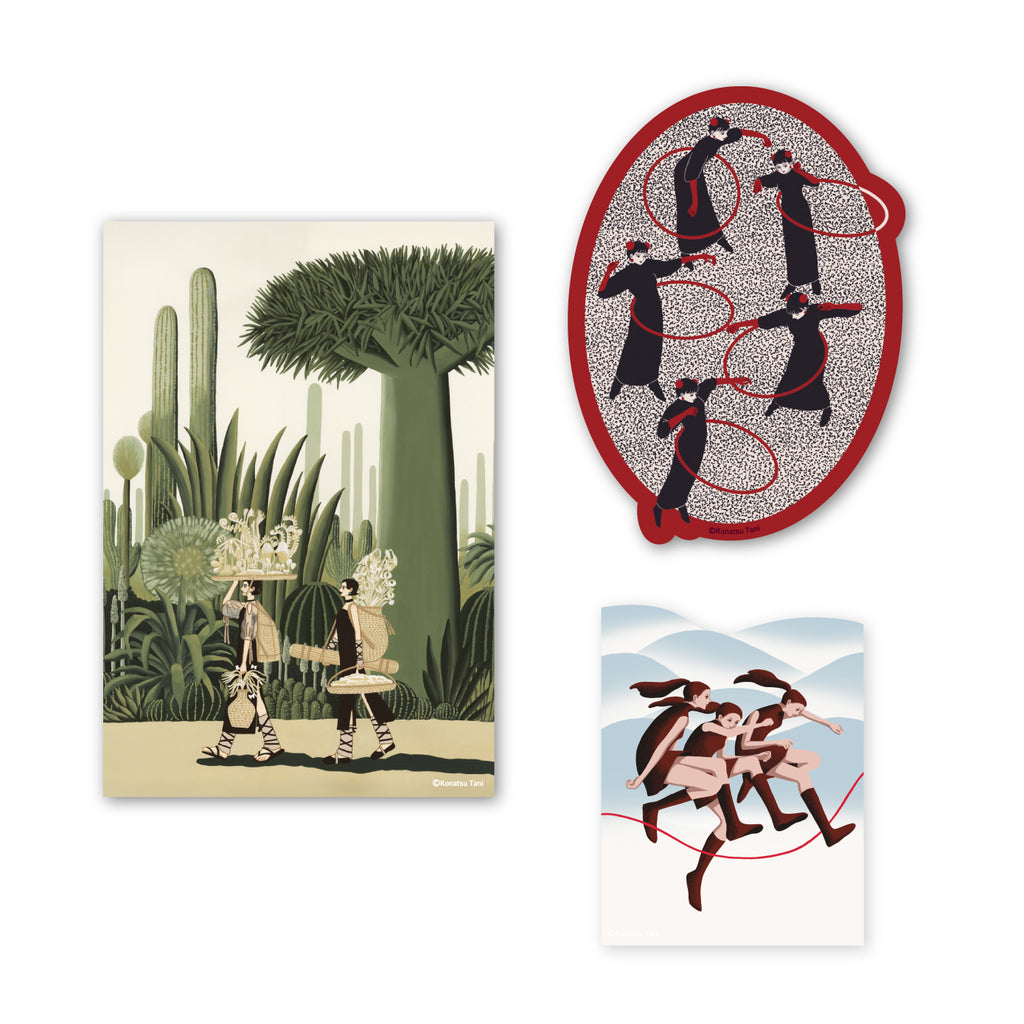 ![]() ![]() A set of three stickers featuring Tani Konatsu's works. To match the worldview of the work, the design allows for a moderate amount of transparency in the background and the paper used has a special texture. The set includes a wide range of stickers, from small sizes that are easy to stick on smartphones and notebooks to larger sizes that make a statement. |