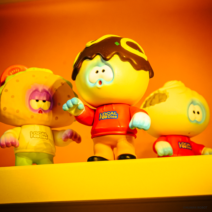 大人気アーティスト・HUMAN ROBOT氏の新作キャラクター"ローカルフード"のゾンビたちが、フィギュアコレクションになってケンエレファントより新登場!