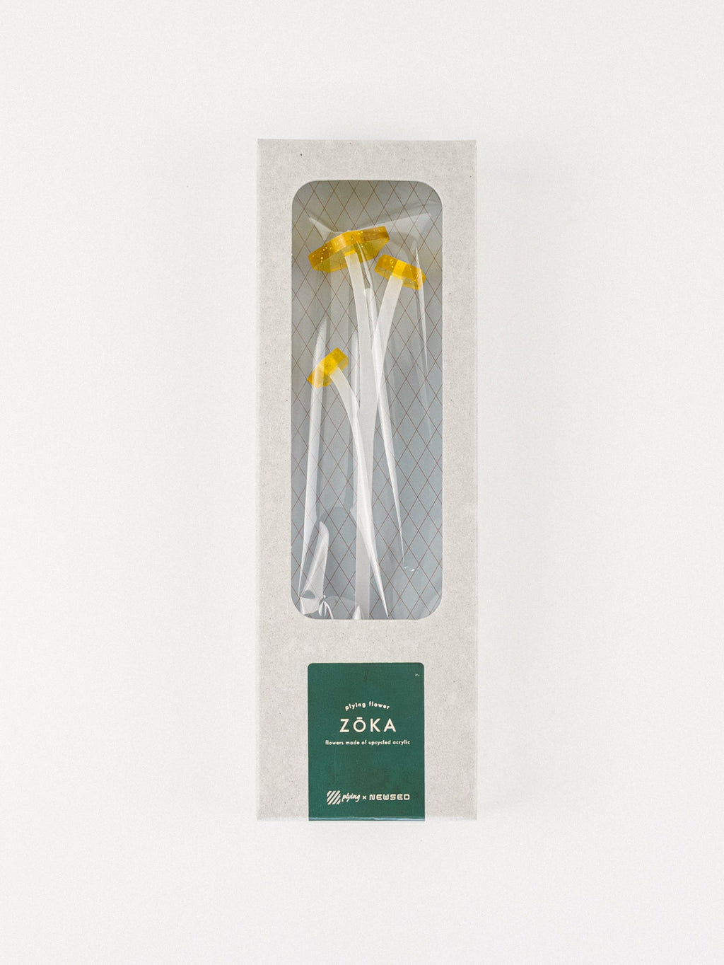 "木とアクリルのアクセサリーデザインを展開するブランド「Plying」とのコラボレーションによって生まれた、UPCYCLE EDITIONです。造花の考えを plying らしくアレンジし、“花の代わりに飾る花”ではなく、そこにあるだけで美しいモノを飾る。