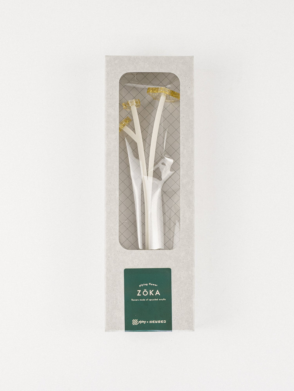 "木とアクリルのアクセサリーデザインを展開するブランド「Plying」とのコラボレーションによって生まれた、UPCYCLE EDITIONです。造花の考えを plying らしくアレンジし、“花の代わりに飾る花”ではなく、そこにあるだけで美しいモノを飾る。